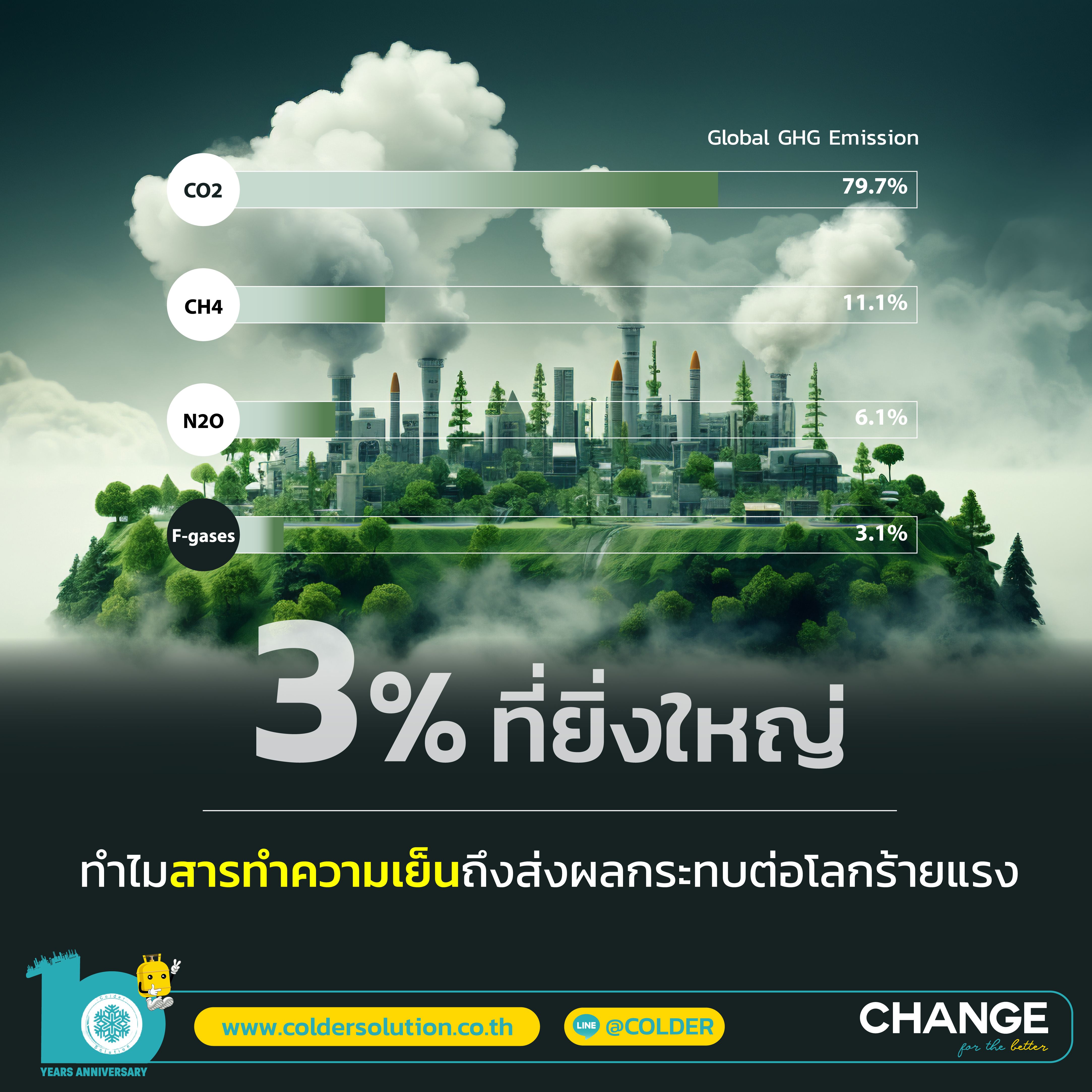 การใช้สารทำความเย็นที่มี GWP สูง ที่มีก๊าซเรือนกระจกฟลูออรีน (F-gases) นั้นสามารถกักเก็บความร้อนได้มากกว่าคาร์บอนไดออกไซด์หลายพันเท่า